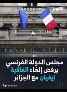 نشرت عدة منابر إعلامية رسمية جزائرية خبرا يؤكد ما جاء في مقالاتنا الأخيرة بخصوص  كواليس المعركة الدبلوماسية التي تدور بين الرباط و باريس، حيث كشفت  بأن مجلس الدولة الفرنسي رفض طلب إلغاء اتفاقية “إيفيان”  مع الجزائر، و هي النقطة التي سبق أن أشرنا لها من خلال الحديث عن وجود مفاوضات موازية بين باريس و الجزائر، و قلنا  بأن  النظام الجزائري أمام الضغوط الفرنسية  اشترط على قصر الإليزيه مراجعة اتفاقية “إيفيان”،  مقابل تقبل فكرة “اعتراف” فرنسا للمغرب بالسيادة على الصحراء الغربية.